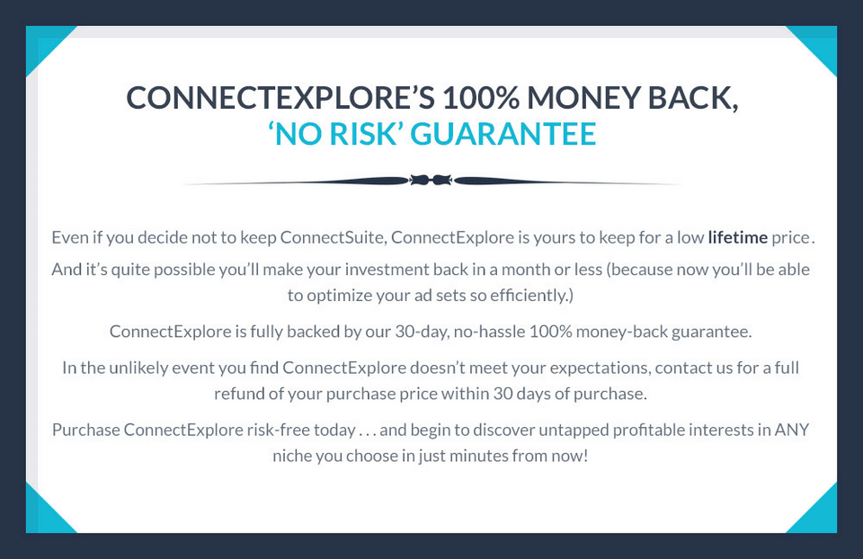 • Can I get access to ConnectExplore without the trial to ConnectSuite? Although they highly recommend checking the free trial to ConnectSuite out (after all, the risk is on us and it won’t cost you a dime for 30 days), you do have the option to get access to JUST ConnectExplore without the trial to ConnectSuite. You can get access to just ConnectExplore here.
