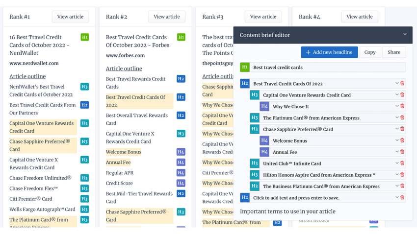 Review top-to-bottom outlines of competitor articles and identify new opportunities to throw them off their SEO game.