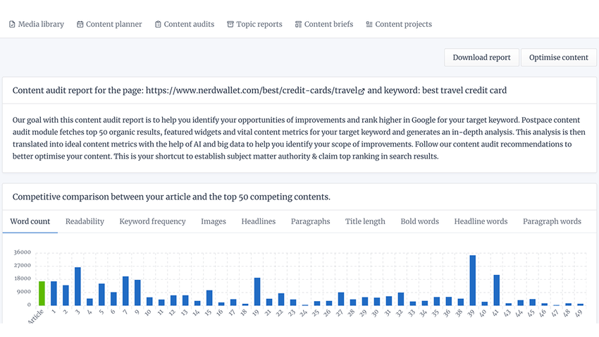 Contentpace also extracts relevant natural language processing (NLP) phrases, which means your writers can deliver content that’s topical and highly searchable.